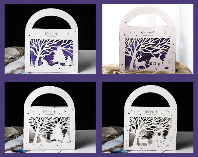 隨著時代的變遷,賀卡也跟著“與時俱進(jìn)”了。那種風(fēng)格千篇一律古板單一的賀卡已經(jīng)逐漸淡出歷史的舞臺。賀卡激光鏤空機進(jìn)行雕刻加工無需開刀模,快速成型,切口平整,圖形可任意形狀,賀卡激光雕刻加工具有很強的立體感,且賀卡激光雕刻加工款式新穎。賀卡激光鏤空機具有加工精度高、自動化程度高、加工速度快、加工效率高、操作簡單方便等特點,適應(yīng)了紙品生產(chǎn)技術(shù)潮流,所以激光鏤空加工技術(shù)正在以驚人的速度在紙品行業(yè)內(nèi)得到推廣和普及??梢詮氐卓朔鹘y(tǒng)喜帖賀卡印刷耗時、不環(huán)保的這些缺點。