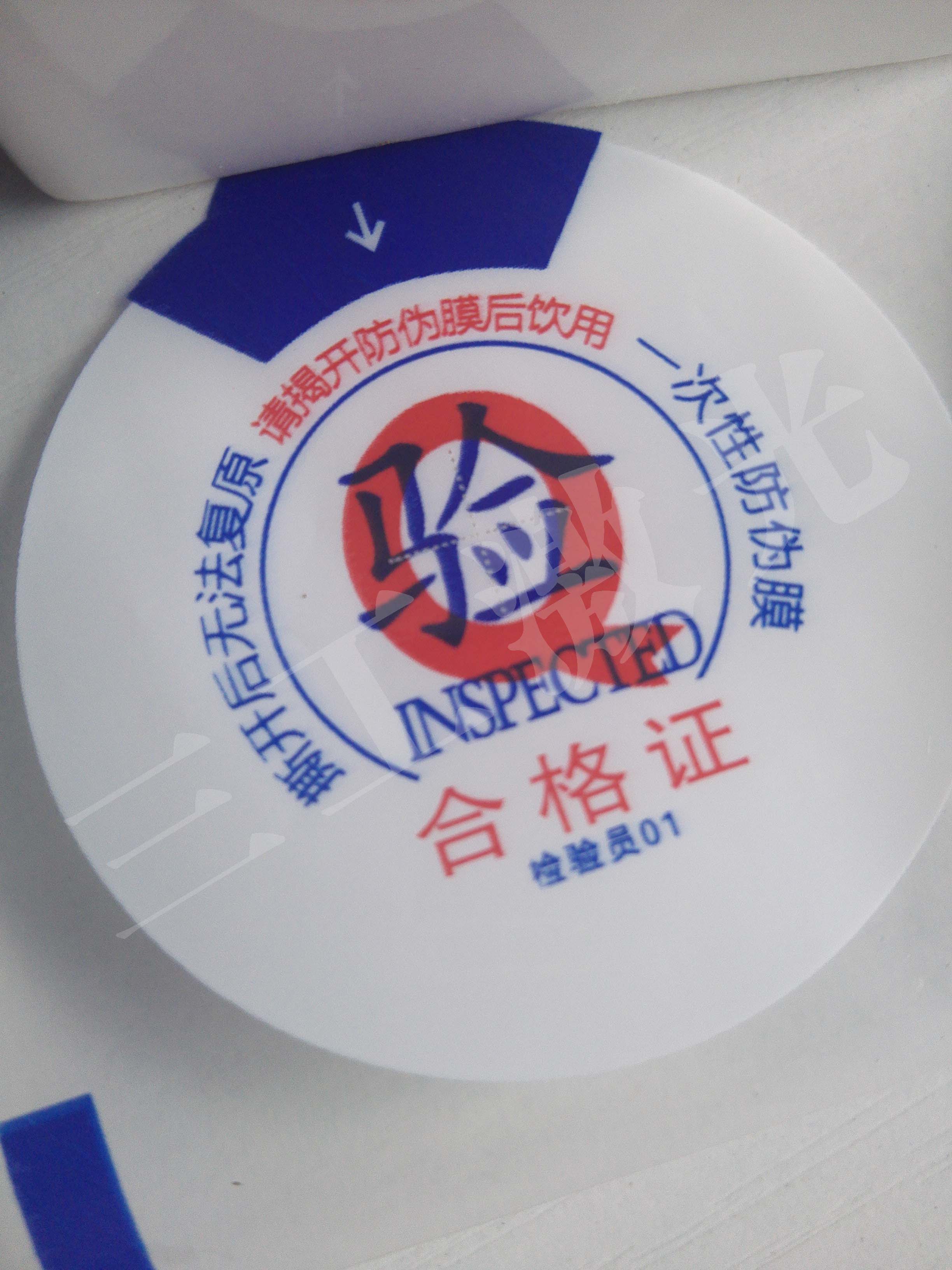 現(xiàn)有技術(shù),桶裝水標(biāo)簽?zāi)ひ话銥榭招牡陌敕饪跓崾湛s膜,因此為了實現(xiàn)防塵功能,還需要在桶裝水瓶蓋的頂部用膠水貼上一層封口貼。但是該半封口熱收縮膜與封口貼的結(jié)合方案存在以下兩個問題:1、由于半封口熱收縮膜一般是蓋在封口貼上的,因此需撕開半封口熱收縮膜后才能撕開封口貼,步驟繁瑣,而且半封口熱收縮膜貼合瓶蓋及其緊密,撕開的難度較大;2、封口貼需采用膠水貼合在瓶口處,存在污染水質(zhì)的風(fēng)險,而且殘留在瓶口的膠水裸露在空氣中會吸附塵埃,增加桶裝水瓶的清潔回收的難度。
