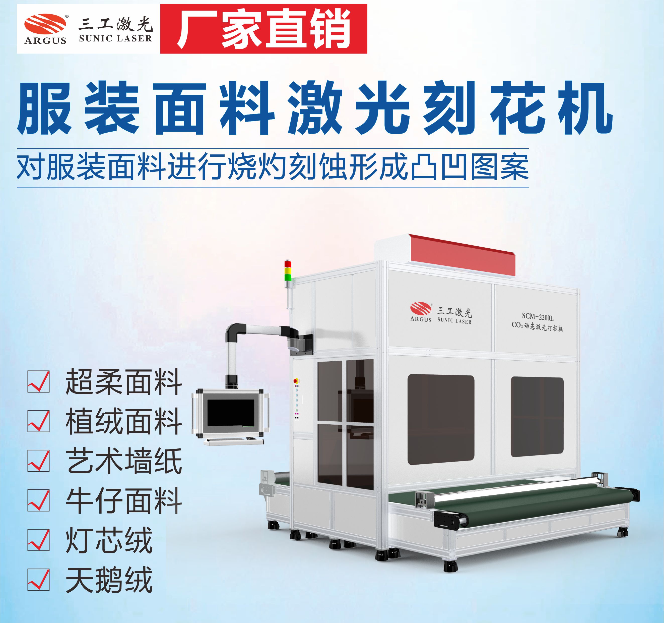 三工激光的布料激光燒花機(jī)的應(yīng)用領(lǐng)域有哪些?