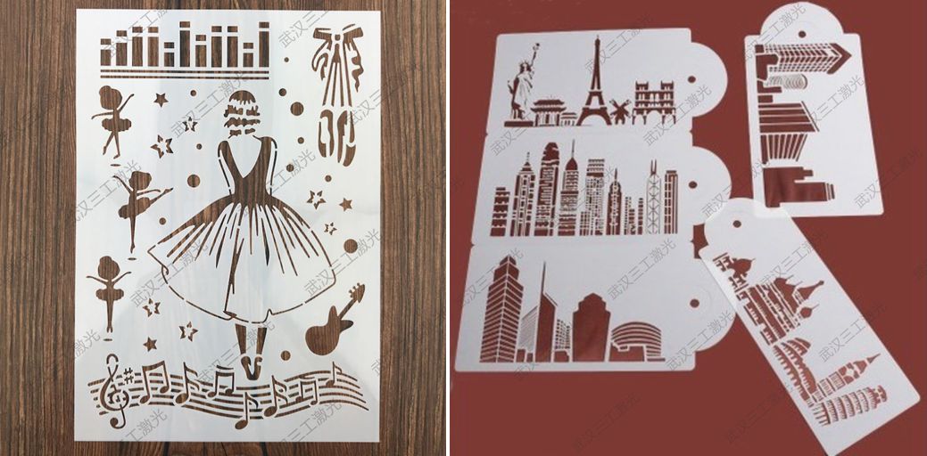 傳統(tǒng)的繪畫模板制作耗時(shí)周期長(zhǎng)、樣式比較單一,而新興的塑料繪畫模板激光鏤空雕刻技術(shù),則是由電腦控制的無(wú)接觸式加工方式,圖案可以任意設(shè)計(jì), 設(shè)計(jì)好的圖案立馬可以投入生產(chǎn)加工,無(wú)耗材,可以滿足多樣化的需求。同時(shí)激光鏤空雕刻的繪畫模板精度高,可達(dá)0.01mm,品質(zhì)好!塑料片材制作的繪畫噴繪模板采用激光鏤空機(jī)擁有魔法般神奇的加工效果。噴繪模板,眉卡,繪圖模板、賀卡、喜帖等傳統(tǒng)加工方式由于其耗時(shí)、不環(huán)保等缺點(diǎn)逐步受到淘汰,線條細(xì)膩,個(gè)性化強(qiáng),精細(xì)度高、切口漂亮無(wú)碳化痕跡、速度快的繪圖模板激光鏤空,因其高效率、高精度受到廣泛青睞。