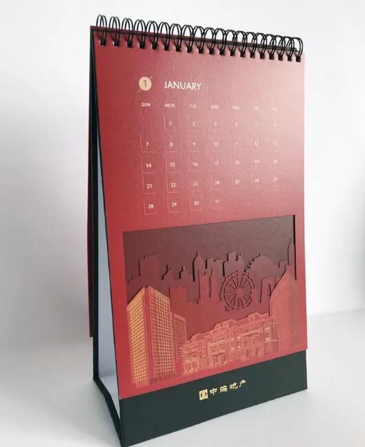 封面鏤空,即通對封面某個特定位置鏤空,露出第二張的內(nèi)容,通常鏤空外形是企業(yè)的LOG或有意義的圖形,用以展示美觀或表達(dá)特殊意思。此工藝是目前幾年臺歷制作,比較流行,比較暢銷!