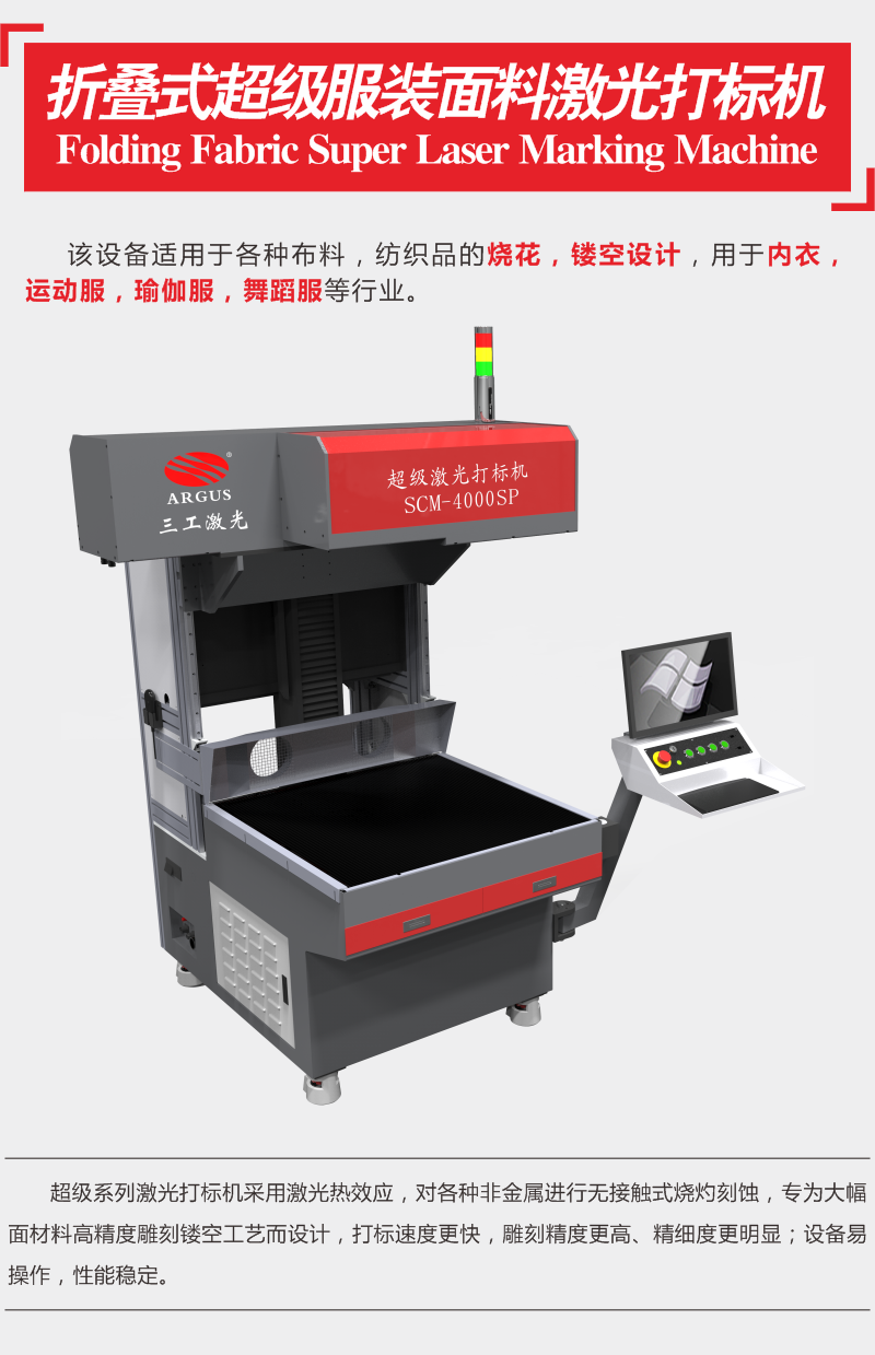 選用原裝進口二氧化碳射頻激光器、動態(tài)聚焦系統(tǒng)。可在服裝面料、熱轉印刻字膜上雕刻任意花紋,幅面600mm*600mm——2200mm*無限長可自由選擇。同時該設備還可兼容位圖,任何一張jpg圖片經過少量加工后即可用于雕刻,相較于傳統(tǒng)工藝,該設備具有加工速度快、加工一致性好、無污染等特點。廣泛應用于皮革、鞋料、牛仔、無紡布、布料等鐳射、燒花、雕刻、切割、打孔、打碼、噴碼等。
