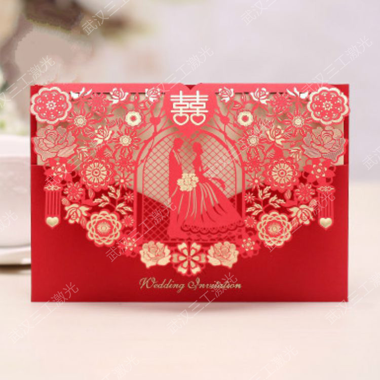 紅包利是封激光雕刻機(jī)無需開刀模,快速成型,切口平整,圖形可任意形狀,激光雕刻加工具有很強(qiáng)的立體感,且賀卡激光雕刻加工款式新穎。紅包激光鏤空機(jī)具有加工精度高、自動化程度高、加工速度快、加工效率高、操作簡單方便等特點,適應(yīng)了紙品生產(chǎn)技術(shù)潮流,所以激光鏤空加工技術(shù)正在以驚人的速度在紙品行業(yè)內(nèi)得到推廣和普及。可以徹底克服傳統(tǒng)喜帖賀卡印刷耗時、不環(huán)保的這些缺點。